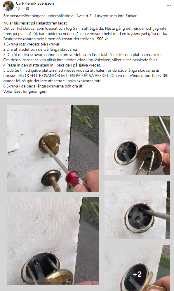 Lösningen finns i föreningens Facebook-grupp. Sök på "Bostadsrättsföreningens underhållsskola" eller klicka på bilden nedan: